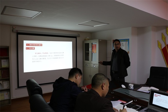 發(fā)布時間:2017-12-26 作者:文/葉瀟圖 義潔/鄒帥 來源:本站原創(chuàng) 審核:羅海蘭12月26日,實(shí)業(yè)公司黨支部開展以“聚焦十九大、暢談新變化、助力新發(fā)展”為主題的黨日活動。實(shí)業(yè)公司副總經(jīng)理、黨支部組織委員蘭乾雄組織全體黨員同志共同學(xué)習(xí)十九大重要文件精神及相關(guān)內(nèi)容。