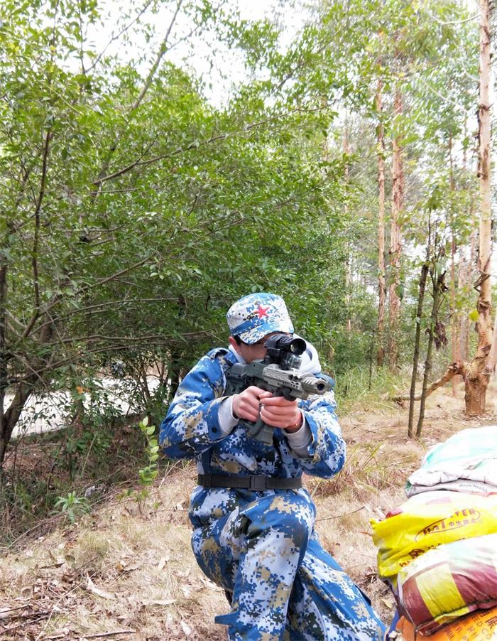 兩隊隊員在隊長的指揮和布陣下,進入訓(xùn)練陣地,時刻準(zhǔn)備著殲滅敵軍,有的采取主動出擊、搶占先機,有的采取堅守陣地,有的迂回運動,有的隱秘草叢,有的左右夾擊,一時間廝殺的難解難分,點射聲掃射聲此起彼伏。