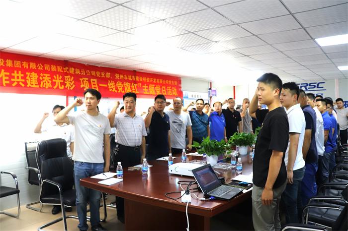 5月18日下午,通號建設(shè)集團(tuán)有限公司裝配式分公司與賀州市城市建設(shè)投資開發(fā)有限公司黨員在賀州市平桂區(qū)鵝塘鎮(zhèn)第二初級中學(xué)整體遷建項目部聯(lián)合開展“合作共建添光彩,項目一線黨旗紅”主題黨日活動。活動先后進(jìn)行了集體重溫入黨誓詞、黨的“十九大”知識競賽、黨員先鋒崗授旗、拔河比賽以及集體種植草坪等。通過此次活動,通號公司與城投公司員工增進(jìn)了友誼,加深了感情增強(qiáng)黨員職工勇爭先進(jìn)、團(tuán)隊合作的精神。