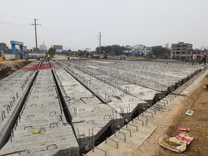 生態(tài)新城永康路永豐路工程橋梁工程項目是我市重點民生工程之一,現正在全力推進永康路育才河橋和黃田支渠橋的建設推進工作。截至目前,項目已完成投資1895萬元,完成永康路兩座橋梁的梁板架設施工,接下來將全力以赴開展橋面施工,以確保永康路兩座橋梁在3月底前通車,進一步緩解城區(qū)交通壓力。