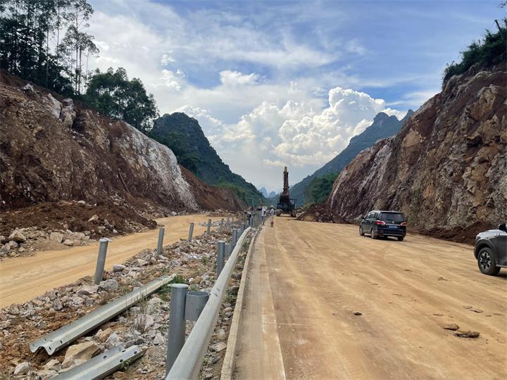 賀州(賀街)至富川一級公路二期工程(蓮塘至西灣段)塌方路段邊坡排險施工已基本完成,目前正在開展施工路面現(xiàn)場清理工作,待交警部門現(xiàn)場驗收確認后可開放交通。