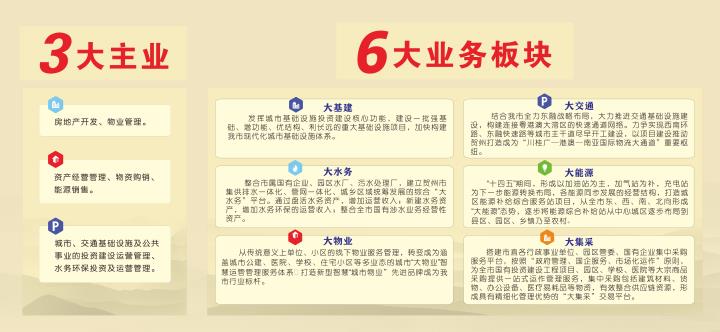 城投集團立足戰(zhàn)略布局,持續(xù)優(yōu)化布局結(jié)構(gòu),主責主業(yè)更加突出。2021年,根據(jù)市委部署要求,城投集團與原交投集團進行重組合并。合并后的城投集團定位為以承擔基礎(chǔ)設(shè)施投資建設(shè)、提供公共服務(wù)和產(chǎn)品、土地開發(fā)經(jīng)營利用為三大核心功能的經(jīng)營實體。根據(jù)三大核心功能定位,城投集團研究確定了“三大主業(yè)六大板塊”的發(fā)展思路,提出“大基建、大交通、大水務(wù)、大能源、大物業(yè)、大集采”等六大轉(zhuǎn)型發(fā)展新板塊,同步推進建筑材料貿(mào)易、賀州智慧停車、金融押運、小額貸款、特許經(jīng)營等輔助業(yè)務(wù),支撐核心業(yè)務(wù)發(fā)展,做大現(xiàn)金流、做強企業(yè)實力、做優(yōu)企業(yè)資產(chǎn)。