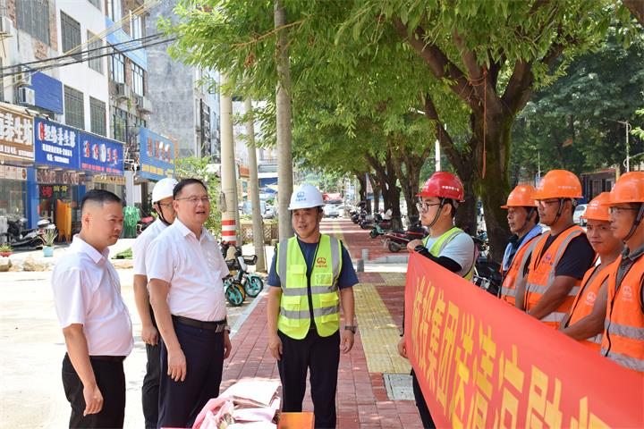 連日來,賀州市頻繁發(fā)布高溫預(yù)警,熱浪襲人。7月27日,為傳達城投集團黨委的關(guān)心關(guān)愛,集團黨委書記、董事長黃俊到賀州市城市品質(zhì)提升改造項目(城區(qū)道路白改黑)開展送清涼慰問活動,為高溫下堅守一線的勞動者送上西瓜、涼茶等防暑降溫慰問品。