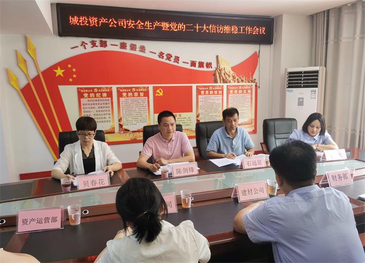 9月30日,城投資產(chǎn)公司召開安全生產(chǎn)暨黨的二十大信訪維穩(wěn)工作會議。會議要求,黨的二十大召開在即,維護社會大局和諧穩(wěn)定意義重大,公司上下要提高政治站位,對標(biāo)工作要求壓實工作責(zé)任,定期開展安全隱患排查,堅決防范安全生產(chǎn)事故,牢守不發(fā)生影響社會穩(wěn)定事件的底線。