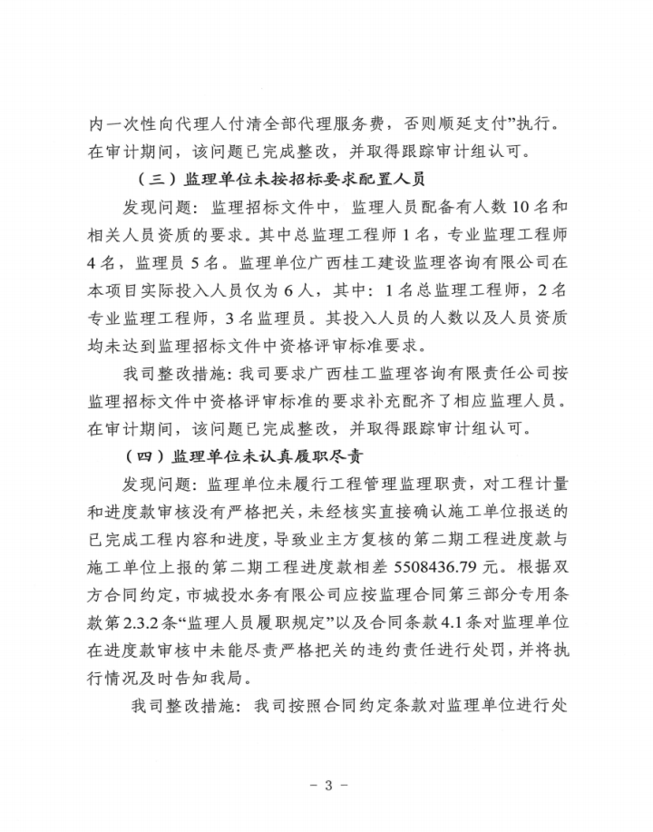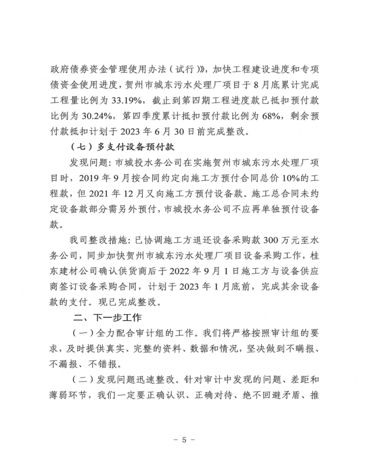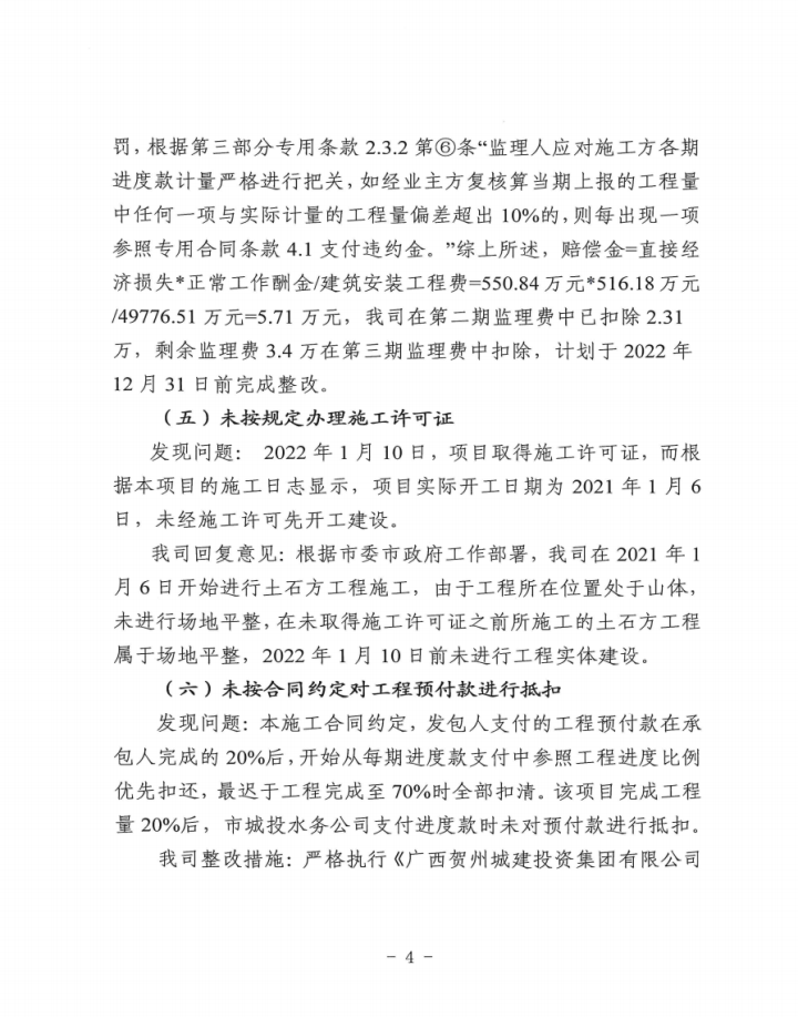 上一篇:關(guān)于賀州市城投公司辦公樓附屬裝修工程結(jié)算審計(jì)發(fā)現(xiàn)問(wèn)題整改情況的報(bào)告