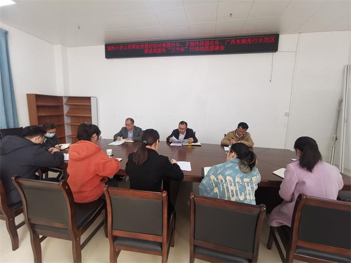 小貸公司召開(kāi)本公司“三個(gè)年”動(dòng)員部署會(huì),要求公司上下要進(jìn)一步解放思想,強(qiáng)化作風(fēng)建設(shè),重實(shí)效、強(qiáng)實(shí)干、抓落實(shí),以“三個(gè)年”活動(dòng)為抓手,聚焦信貸業(yè)務(wù)發(fā)展加油干、強(qiáng)化風(fēng)險(xiǎn)防控不松勁、改進(jìn)干部作風(fēng)不停步,以作風(fēng)的轉(zhuǎn)變推動(dòng)公司高質(zhì)量發(fā)展。