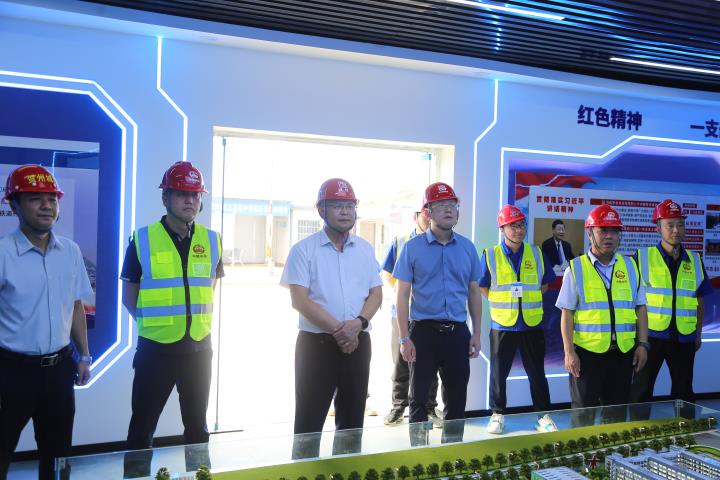 在賀州第三高級(jí)中學(xué)項(xiàng)目現(xiàn)場,黃俊詳細(xì)地觀摩了項(xiàng)目部VR體驗(yàn)室、項(xiàng)目積分商城、智慧工地展廳、現(xiàn)場安全質(zhì)量標(biāo)準(zhǔn)化管理樣板間等,對(duì)項(xiàng)目的施工工藝、建筑品質(zhì)、管理水平等方面給予了高度的贊賞。他要求,各參建單位要加大聯(lián)動(dòng),密切配合,嚴(yán)格把控風(fēng)險(xiǎn),重視工程安全、質(zhì)量、進(jìn)度和成本,以工匠精神打造精品項(xiàng)目,高標(biāo)準(zhǔn)、高水平、高質(zhì)量推動(dòng)項(xiàng)目建成。