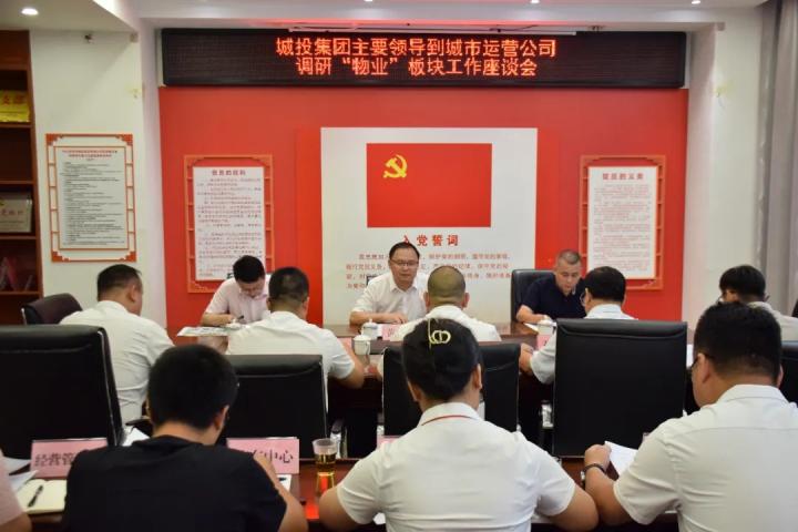 發(fā)布時間:2024-07-16 作者:審核:葉茂桃 吳姍 來源: 審核:葉茂桃 吳姍7月16日上午,城投集團黨委書記、董事長黃俊先后到運營公司調(diào)研“物業(yè)”板塊業(yè)務(wù)并召開座談會。集團副總經(jīng)理黃輝陪同調(diào)研。
