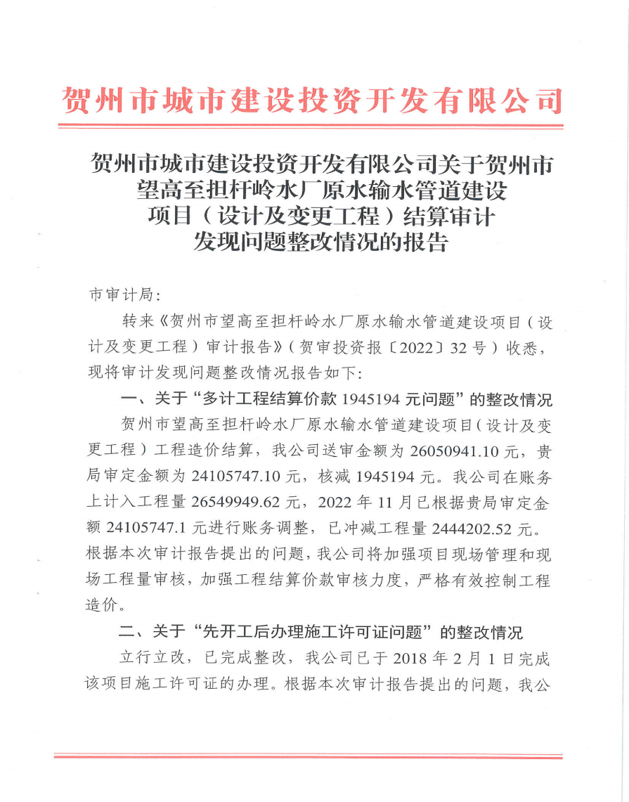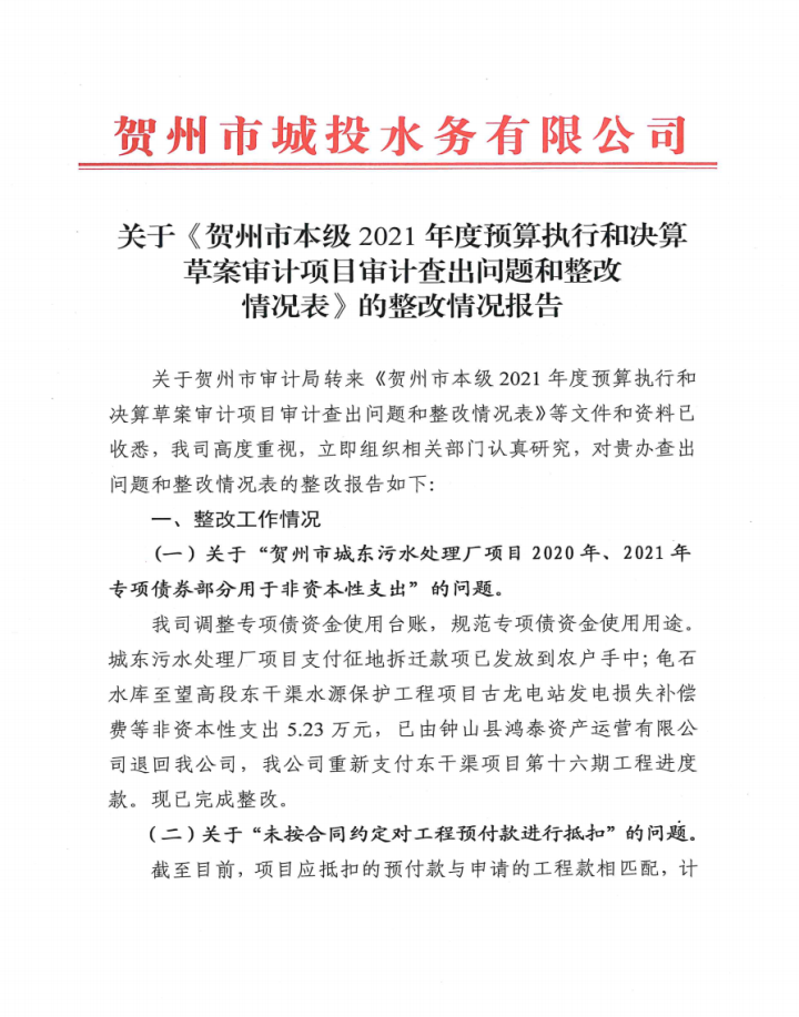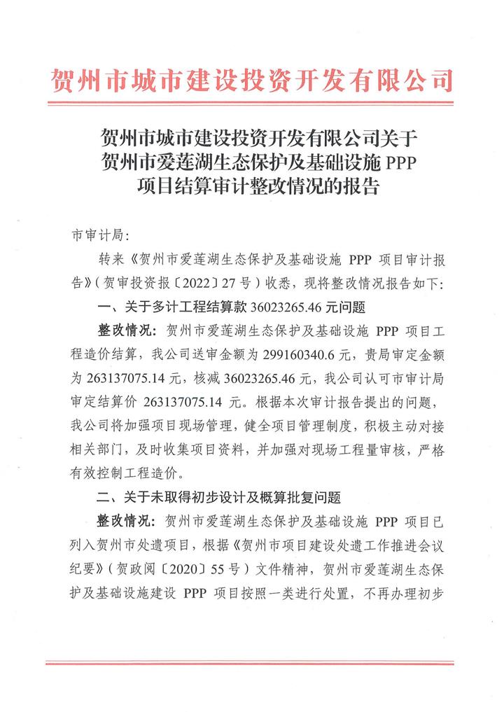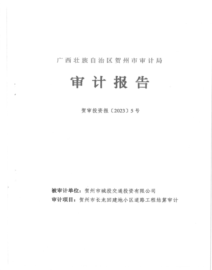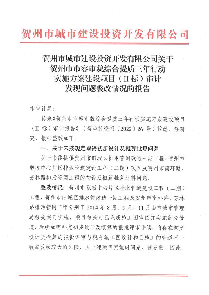 附件上傳:廣西賀州城建投資集團有限公司投資項目專項審計整改情況公告 pdf