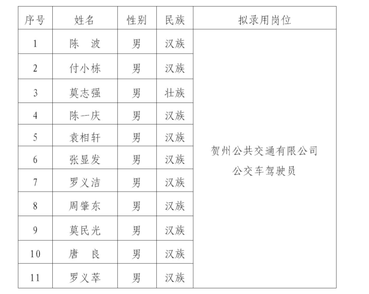 賀州市城市運(yùn)營投資管理有限公司2023年第一次公開招聘擬錄用人員公示2023-06-30