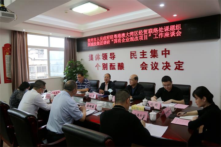 賀州市人民政府駐粵港澳大灣區(qū)經(jīng)貿(mào)聯(lián)絡(luò)處課題組到城投集團(tuán)開(kāi)展調(diào)研2022-05-10
